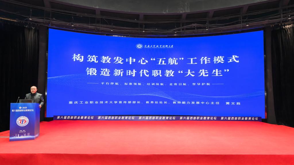 0812月5日,第六届西部职业教育论坛在重庆举行。论坛以“贯通·融合·支撑:以标准建设引领西部职业教育高质量发展”为主题,汇聚西部12个省、自治区、直辖市近500名代表,共商职业教育发展大计。我校宣传部部长、教务处处长、教师能力发展中心主任黄文胜代表学校应邀出席,并在院...