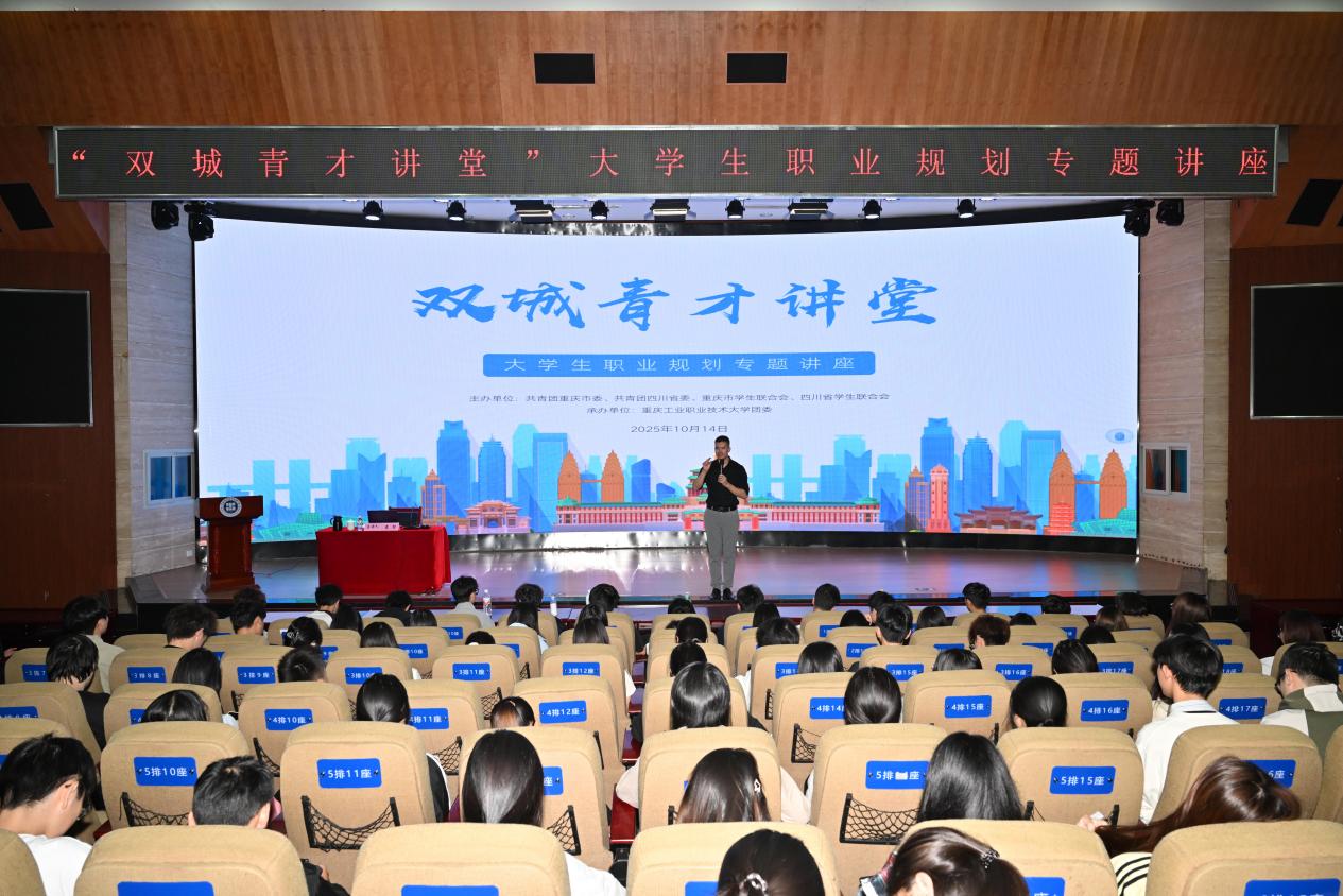 10月14日下午,由共青团重庆市委、共青团四川省委、重庆市学生联合会、四川省学生联合会联合主办,校团委承办的“双城青才讲堂”大学生职业规划专题讲座在第一学术报告厅顺利举办。本次讲座邀请了国家人力资源和社会保障部马兰花SIYB创业培训项目国家级培训师、重庆市高新区袁...