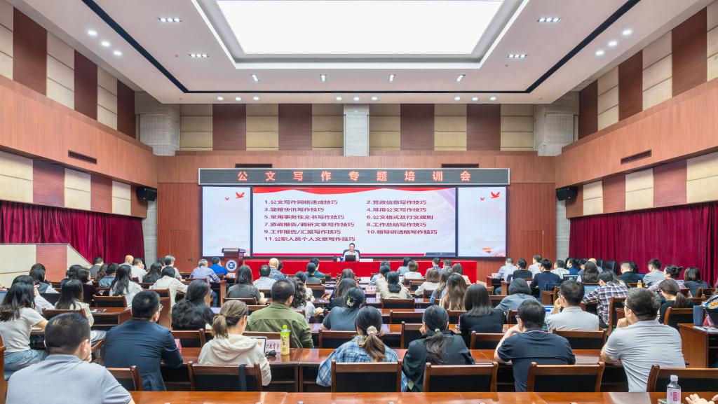 为全面提升学校干部公文写作素养与履职能力,夯实办文办会办事基本功,10月17日,学校邀请了沙坪坝区委组织部副部长张晓东来校开展公文写作专题培训。学校科级及以上干部、各部门负责公文起草人员共计100余人参加培训。张晓东立足党政机关公文工作实践,从理论框架构建、实用技...