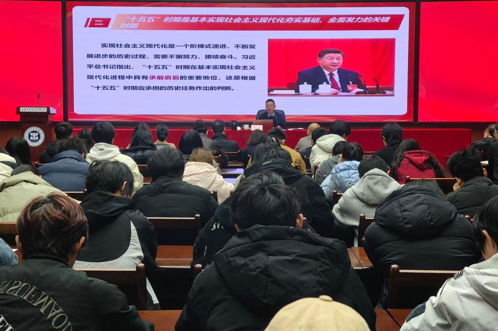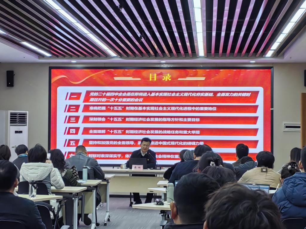 为贯彻落实学校党委关于学习贯彻党的二十届四中全会精神的工作部署,推动师生党员准确把握、深刻领会全会的核心内涵与精神实质,12月19日,党委书记郭天平在第三学术报告厅开展党的二十届四中全会精神宣讲。党政办公室全体工作人员、马克思主义学院全体教师及“青马工程”学员...