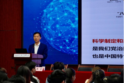 4月9日,党委副书记张荣在第二学术报告厅讲授题为《夯实基础,全面发力—乘势而上、接续推进中国式现代化》形势与政策课,化学与制药工程学院和设计学院师生代表200余人聆听授课。张荣以历史视角为脉络,系统梳理了我国历次五年规划在推进社会主义现代化建设进程中的辉煌实践与...