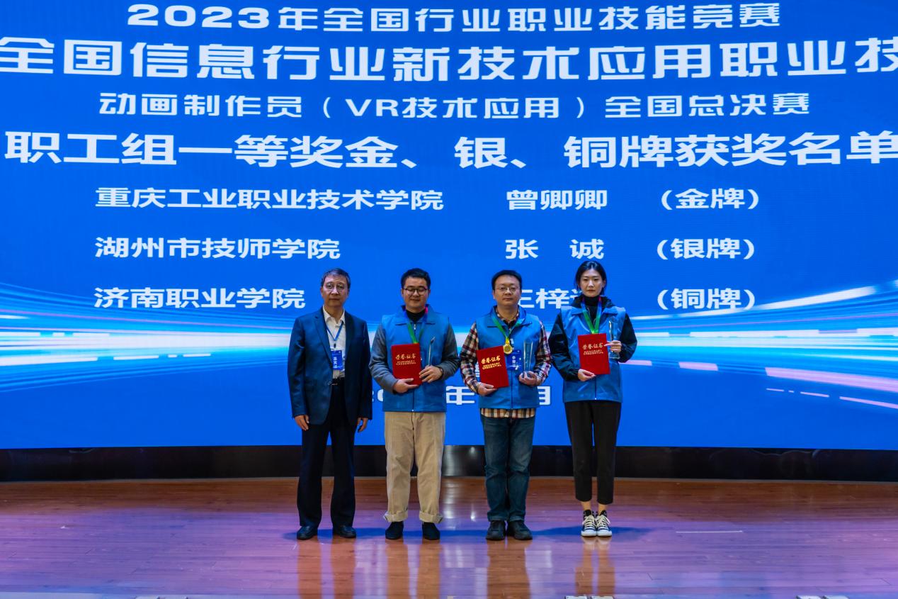2023年第四届全国信息行业新技术应用职业技能竞赛动画制作员(VR技术应用)全国总决赛由人力资源和社会保障部指导,中国电子质量管理协会、中国就业培训技术指导中心主办,重庆工业职业技术学院、重庆市人力资源和社会保障局、中国电子质量管理协会虚拟现实专业委员会承办。大赛以推动产教融合、校企合作为宗旨,以职业化岗位需求为牵引,推动实现“以赛促教、以赛促学、以赛促改”产教融合赛事创新,引领和深化VR技术相关专业教育教学改革与发展。大赛组委会经过各省、自治区、直辖市预赛阶段选拔,最终有来自北京市、上海市、重庆市等全国多个省市的52支队伍入围本次全国总决赛。据悉,本次竞赛为单人赛,职工组决赛前3名的选手,在报请人力资源和社会保障部核准后,将授予“全国技术能手”荣誉称号。