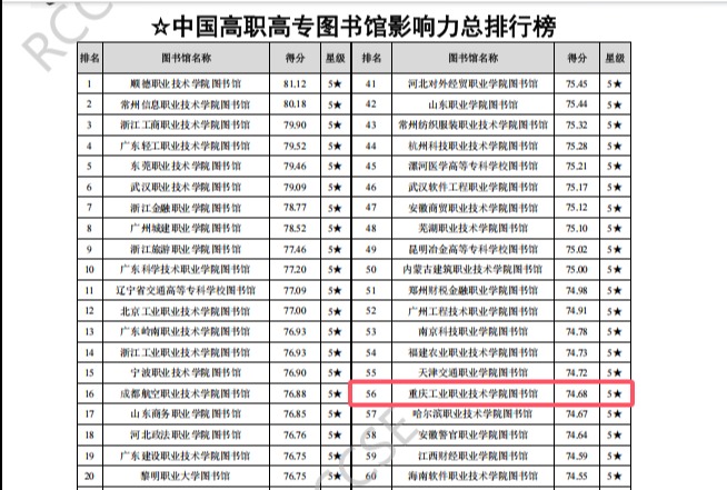 日前,武汉大学中国科学评价研究中心、中国科学与科技政策研究会科学计量学与信息计量学专业委员会联合开展了中国图书馆影响力评价工作,公开发布了《数智时代中国图书馆影响力评价报告(2024)》,我校图书馆影响力排名位居全国第56位、重庆市第一。