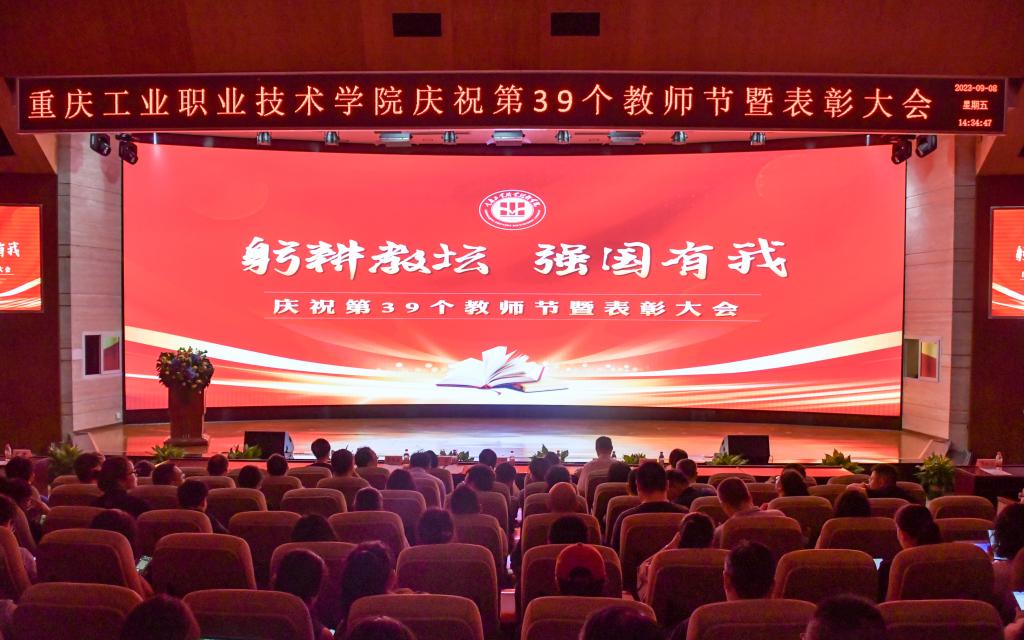 躬耕教坛,强国有我。在第39个教师节来临之际,9月8日下午,重庆工业职业技术学院2023年教师节暨表彰大会在第一学术报告厅隆重举行。学校党委书记郭天平以及全体在家党委委员、副科级以上干部(含教研室主任)、获奖教师代表、学生代表等近500人,欢聚一堂,共庆佳节。大会由党委副书记张荣主持。