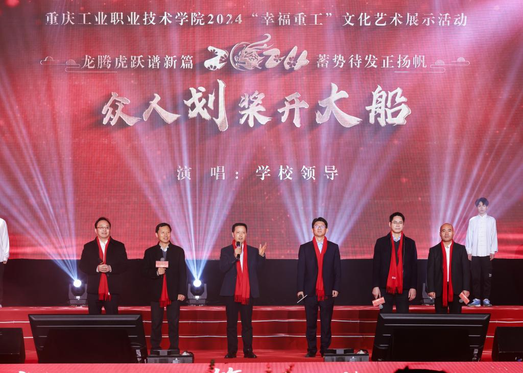 1月12日,由重庆工业职业技术学院工会委员会、校团委共同承办的2024年“幸福重工”文化艺术展示活动在学校体育馆举行。学校党委书记郭天平,党委副书记、院长周传德,党委副书记张荣,党委委员、副院长秦传江、徐兴旺,纪委书记颜正以及部分师生代表到场观看。
