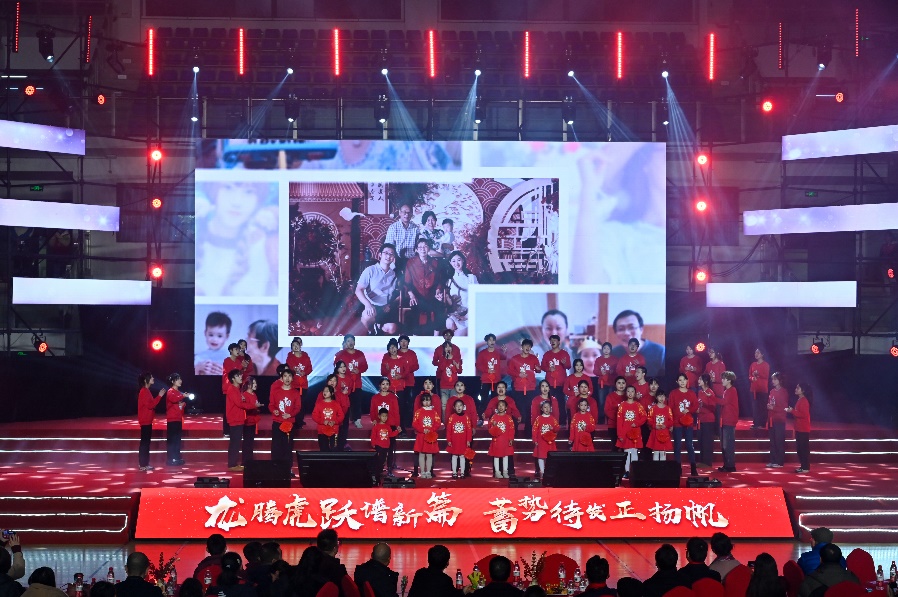 离退休教职工代表带来合唱歌曲《这世界那么多人》,感染了在场每一位热血追梦的重工人。