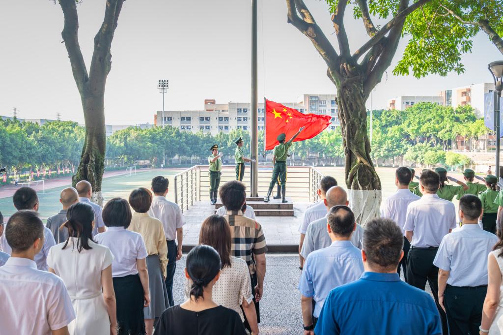 上午8点,升国旗仪式隆重举行。全体在家校领导、师生代表齐聚一堂,共同见证庄严时刻。国旗冉冉升起,全体重工人心潮澎湃,热爱与祝福的话语在心中激荡。