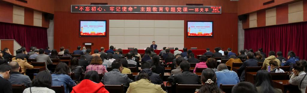 10月25日下午,学校党委副书记、院长郭天平以“勇担使命 争做新时代高水平创新型教师”为题,在图书馆第二报告厅讲授了“不忘初心、牢记使命”主题教育专题党课。学校副院长徐益、徐兴旺、赵柏森,发展规划与质量保障处、人事处、审计处、教务处、科研与合作发展处等部门负责人,各二级学院院长、党总支书记以及教师代表共计200余人共同聆听了讲座。
