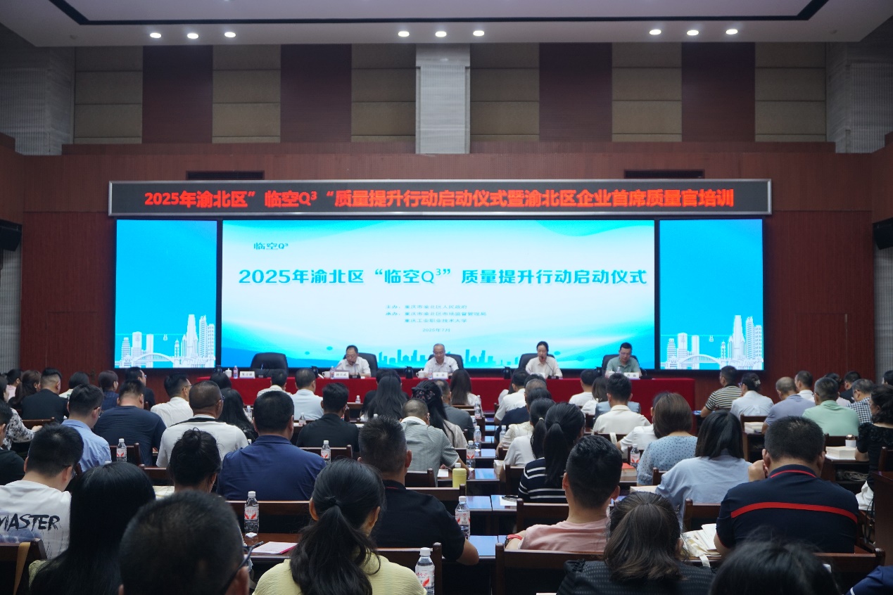 启动仪式由王晶主持。钟兴武在发言中指出,“临空 Q³”质量提升行动聚焦质量监管、服务、发展三个维度,以强化重点领域监管、组建 “临空 Q³ 智囊团”、培育质量品牌等为主要举措。邓南新介绍了推动工业产品质量提升的主要举措,如开展智能工厂培育、软信产业发展等。孙小筱表示,该行动将推行“岗位+培训+评价+就业”模式,并联合培育首席质量官及组建智囊团。许磊介绍了学校专业特色,表示将开放平台助力构建现代化质量体系。宋波表示,要深化部门协同与校政企联动,为行业企业提供“渝北经验”。