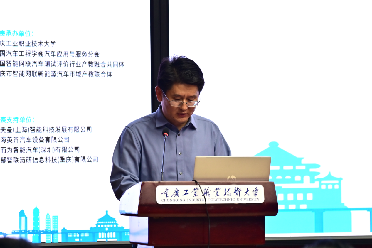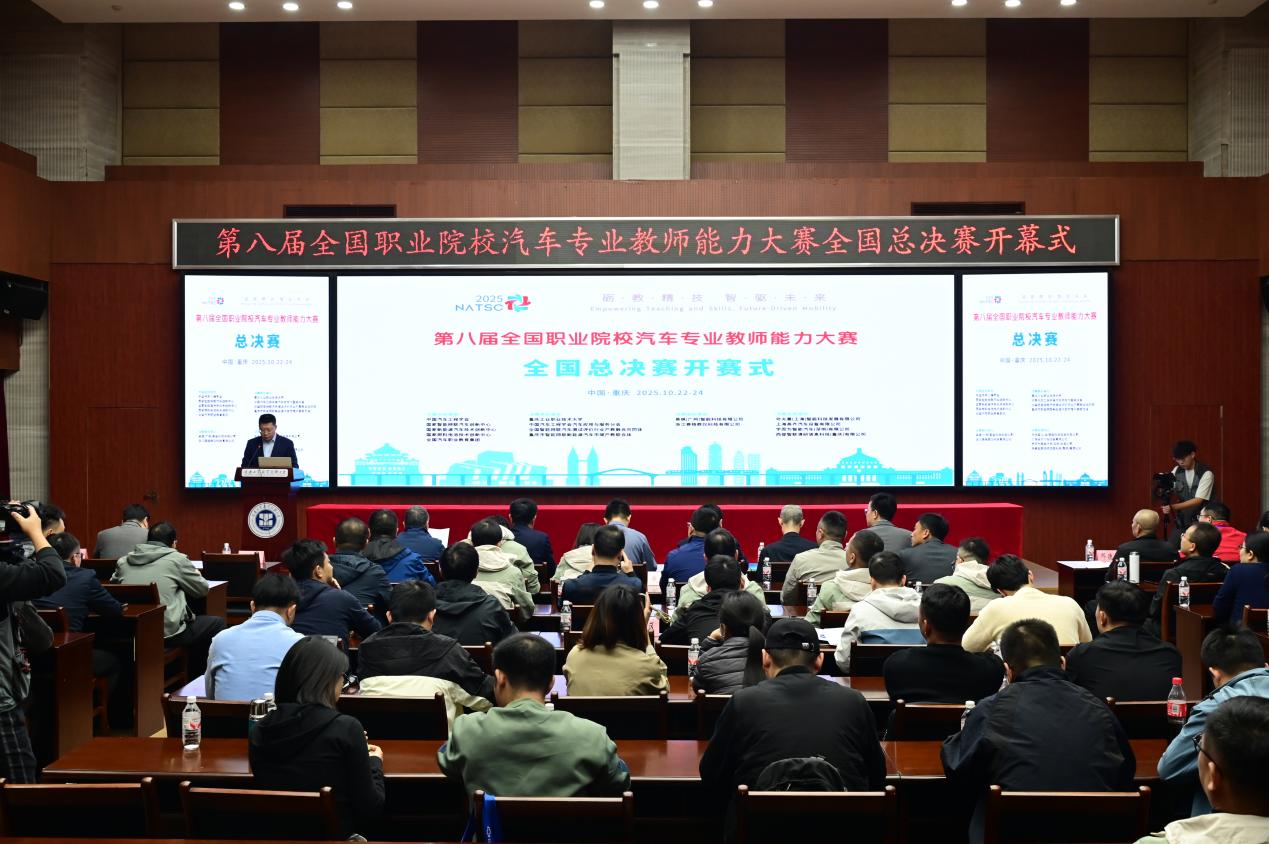 周传德代表学校对各位领导、专家及参赛院校代表表示热烈欢迎。他介绍了学校在三线建设时期积淀的深厚工业根基,以及紧扣汽车产业转型升级的时代趋势,打造新能源智能网联汽车特色专业集群的发展历程。他讲到,学校已累计为行业输送数万名高素质汽车技术技能人才。作为此次大赛的承办方,学校将全力以赴做好赛事服务保障工作,期待以大赛为桥梁,与广大兄弟院校深化合作,共同书写职业教育新篇章!