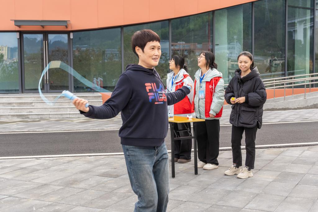 随后,党委书记郭天平宣布打卡挑战正式开始。挑战活动设置了 4 个趣味打卡项目,教职工自由选择打卡顺序与路线,可单人闯关展现个人风采,也可组队协作攻克趣味项目。跳绳场地的轻盈跳跃、呼啦圈旁的灵活转动、颠乒乓球时的专注投入、投篮场上的精准投射,各打卡点前欢声笑语不断,大家在运动中放松身心,在互动中增进交流,用脚步丈量校园美景,用热情点燃冬日活力。