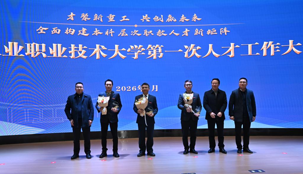 最后,郭天平作总结讲话。他以 “传承、聚变、共生、笃行” 四个关键词,围绕人才工作核心,结合学校 70 周年校庆、第一次党代会召开及“十五五”规划制定的关键节点,对全校教师提出明确要求,为教师成长与学校高质量发展指明方向。他要求,全体教师要传承为国育才的初心使命、尊师重教的优良传统和顶天立地的重工精神;要深刻认识职业本科教育在强国建设、民族复兴中的重要作用,将家国情怀与工匠精神传递给学生,引导青年学子将个人成长与国家利益紧密相连。抢抓职教本科建设、“十五五”规划和新一轮“双高”建设三重机遇,将自身专业成长与学校办学层次提升紧密结合,以更高水平的教学科研能力适配职教本科发展要求;秉持共生理念,与学校双向奔赴、共同成长,找准个人专业所长、科研方向与成长诉求的定位,以主人公的姿态主动为学校发展建言献策;坚持实干担当,锤炼过硬本领,把育人成效作为核心追求,做学生为学为事为人的“大先生”。主动对接国家战略和产业技术变革需求,围绕产业“卡脖子”技术和企业实际难题开展科研攻关。主动适应职业本科教育发展和技术变革要求,把自我提升作为终身课题。他强调,教师是学校最宝贵的财富,全校教师需以此次大会为契机,将个人发展与学校命运紧密相连,在传承中守正,在机遇中奋进,在实干中成长,共同以高质量人才工作支撑高水平职业技术大学建设。