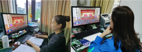 学校各直属党支部党员和教职工观看党的二十大闭幕会
