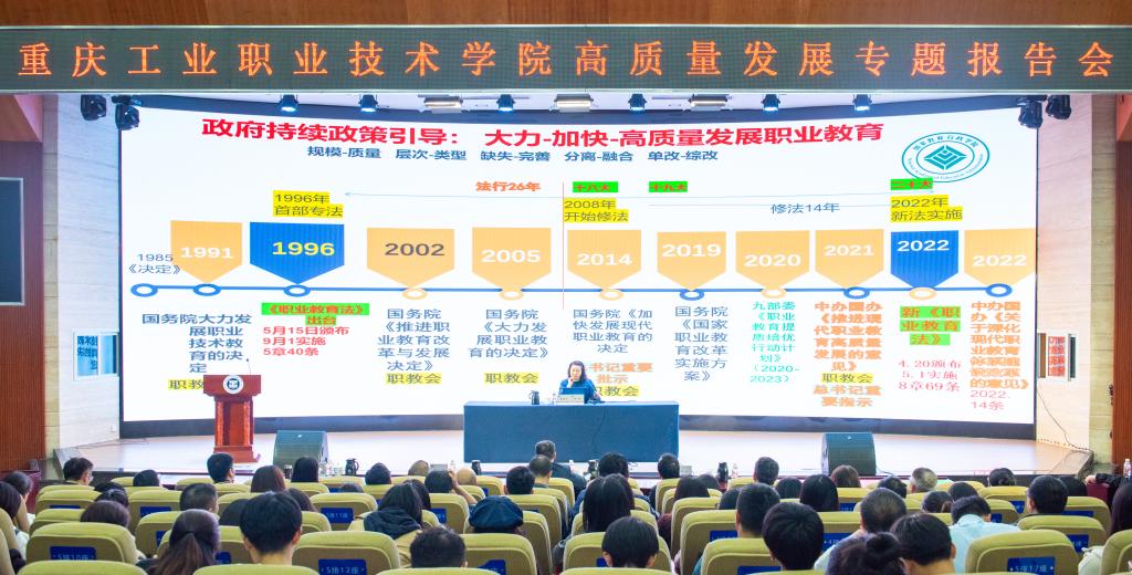 为贯彻落实全国教育大会精神(以下简称“全教会”),进一步推动学校高质量发展,11月15日下午,国家教育行政学院学术委员会原主任委员、职业教育研究中心原主任邢晖教授来校作专题报告。学校党委书记郭天平主持报告会,学校科级以上干部、教研室主任以及各学院教师代表等共计400余人聆听报告会。