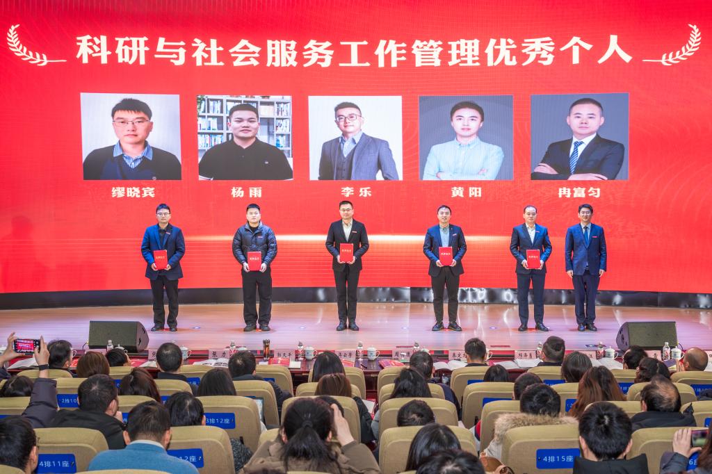 随后,表彰代表依次上台发言。先进集体代表王璐烽、科研工作优秀个人代表杨洋、科研项目优秀个人代表蒋勇、管理工作优秀个人李乐分别分享了他们在科研和社会服务工作中的经验和心得。他们的发言充分体现了学校教职工不畏艰难、勇于创新的精神风貌,激励着更多的师生投身到科研和社会服务工作中去。