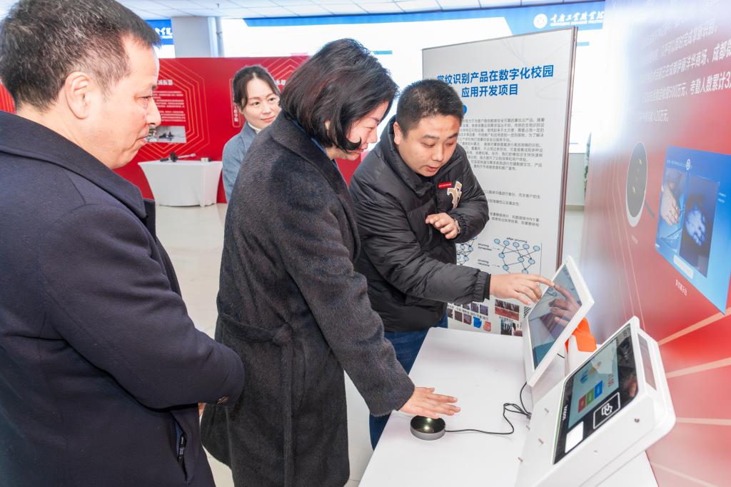 会前,与会领导来到学校科研成果展示厅,详细了解了各类成果研究价值、目的和社会效益等。