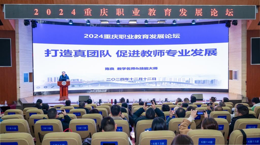 12月12日,2024重庆职业教育发展论坛在重庆工业职业技术学院第一学术报告厅召开。教育部职业教育发展中心教师发展处处长孙琳、市教委职成教处处长吴岚、高教社中职事业二部主任王素霞、市教科院院长蔡其勇、重庆工业职业技术学院党委书记郭天平出席会议。论坛围绕“大力弘扬教育家精神,锻造新时代工匠之师”主题,分为开幕式、主旨报告、论坛讲座三个部分,旨在共同探讨职业教育高素质专业化教师队伍建设问题。论坛开幕式和主旨报告由市教科院职成教所所长胡彦主持,论坛讲座由市教科院职成教所副所长周永平主持。
