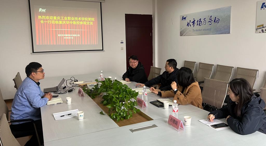 重庆华中数控技术有限公司副总经理刘署亚和区域经理向磊详细介绍了公司的基本情况,并表示,随着行业的快速发展,智能制造领域专业人才需求巨大,希望双方能够建立长期稳定的关系,共同开展人才培养、实习实践等合作。裴江红介绍了学院近年来在学科建设、人才培养、科学研究等方面取得的成绩,表示希望能进一步深化与华中数控的合作,共同探索校企协同育人新模式,为企业输送更多优秀技能人才。