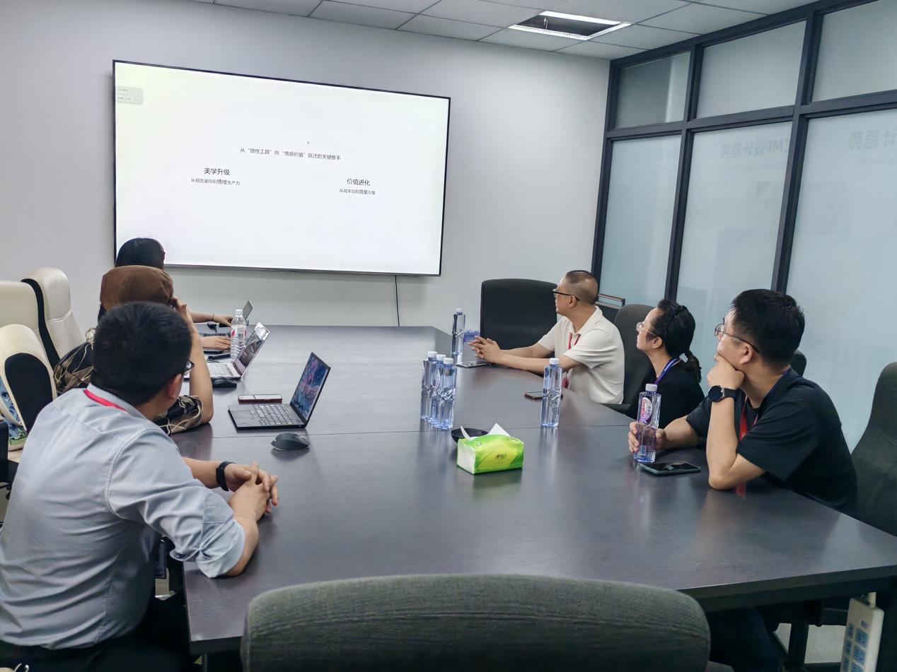 王天宇详细介绍了长虹集团发展历程、产品设计体系以及创新战略布局。调研组一行参观了长虹创新设计中心,并与长虹创新设计中心主任李节苓和资深设计师团队座谈交流。双方围绕工业设计专业人才培养、产教融合模式创新、课程体系改革优化、产品CMF实训室建设、AIGC技术在设计教学中的深度融入等内容展开讨论,探讨了如何将理论教学与产业实践有效衔接,如何将前沿技术向专业教学转化等。此次调研为学院进一步深化产教融合、优化人才培养模式、提升人才培养质量提供了新思路。