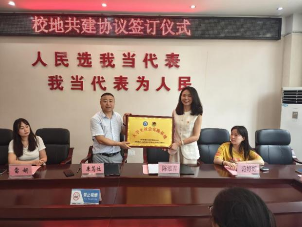 实践团还走进了铜梁区东城街道姜家岩社区,为乡村振兴注入青春力量。社区书记康笃位热情接待了实践团一行。康笃位以“基层治理的实践与展望”为题,系统介绍了姜家岩社区在党建引领、民生服务、文化建设等方面的发展成果,表达了与高校携手构建“校地共生”生态的坚定决心。陈泓吉介绍了学院在学科建设、科研创新、志愿服务等领域的主要成就。双方就社会实践基地共建、青年志愿服务品牌打造、社区治理智能化升级等内容达成共识并签订合作协议。