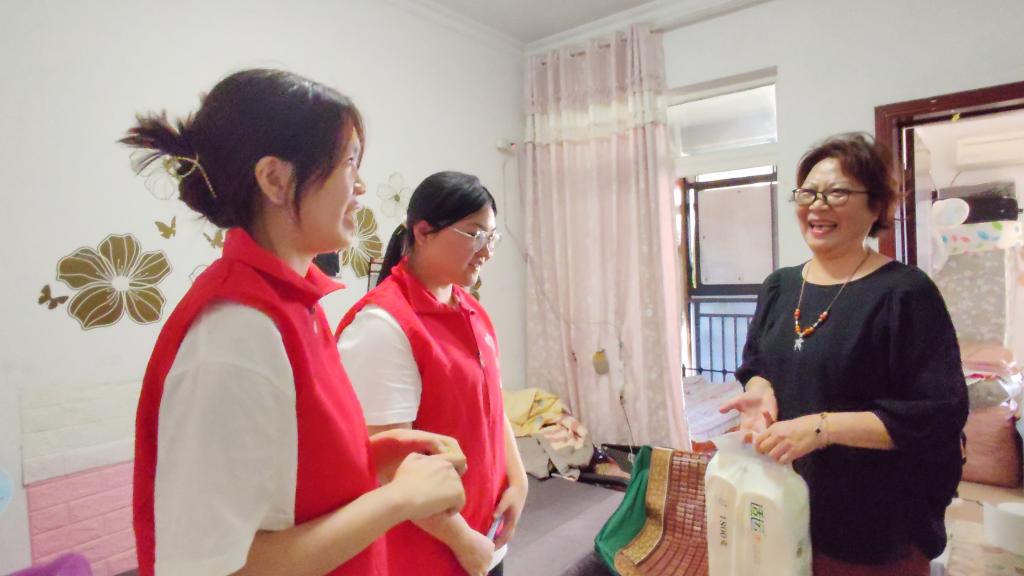 实践团还开展了“情暖桑榆,智伴夕阳”慰问老人行动。 成员们分组前往多户老人家中进行走访,通过与老人亲切交流,成员们详细了解他们的生活状况、健康情况以及生活中遇到的困难,让老人们感受到来自社会的关怀与温暖。