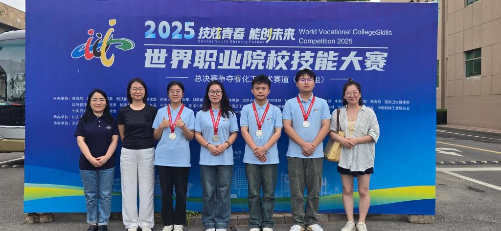 在2025年世界职业院校技能大赛总决赛争夺赛化工技术赛道(高职组)中,学校化学与制药工程学院学生杨超、邓瑾瑶、李长春、吴雅喧,在指导老师邓冬莉、赵洋洋、常禹的带领下,凭借扎实的技术功底与出色的现场发挥斩获银奖,展现了卓越的专业素养和团队协作精神。获奖学生纷纷表...
